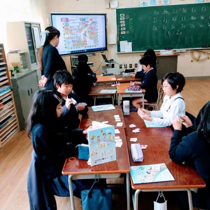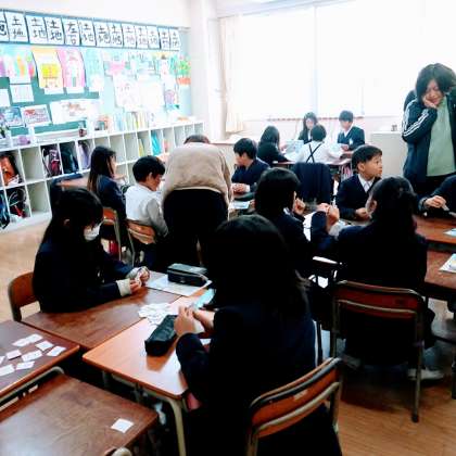11月17日(金)、4年生は、アルファベットカードを使って大文字小文字を合わせる神経衰弱のようなゲームで学習していました。