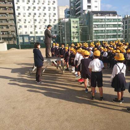 11月20日(月)、全校朝会で南大阪こども民族音楽会の賞状伝達がありました。その後、教頭先生から、テナムの会による「校内発表会」や「南大阪子ども民族音楽会」では練習の成果を発揮して頑張っていたこと、また、22日(水)の学習発表会に向けて、どの学年の児童も一生懸命に練習に励んでいることなどのお話がありました。