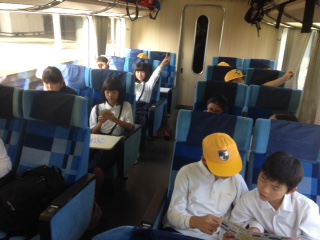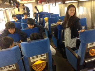 電車で移動中です。スペイン村でどんな活動をしようか考え中です。天気が良いことを願っています。