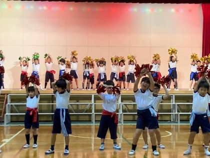 1・2年生による、ダンスです。「九九の歌」「マツケンサンバ」、元気に、そのうえリズムよく踊っていました。