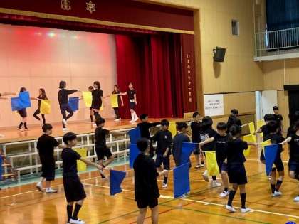5年生の「フラッグ」の演技です。動きとともに、フラッグを振る音の迫力や機敏さが光っていました。