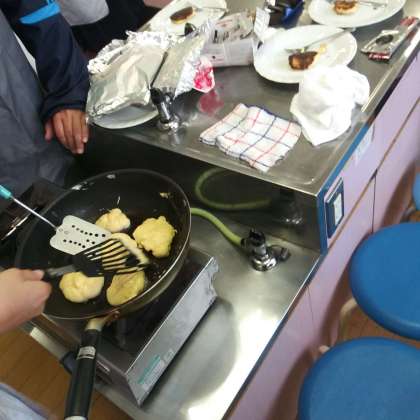 12月12日(火)、手芸・料理クラブと国際クラブが調理実習の様子です。また、屋内外スポーツクラブが体育館では「天下」、交流ホールでは「だるまさんが転んだ!」で楽しんでいました。