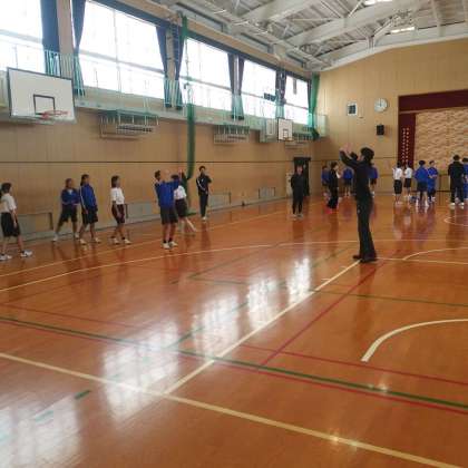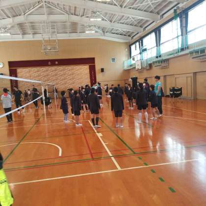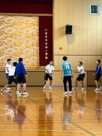 12月14日(木)、男子バレーボールチーム「クボタスピアーズ」の監督さん、選手の皆さん、スタッフの方たちが来校してくださいました。児童・生徒は、選手の皆さんと一緒に体育館でバレーボールをしました。
