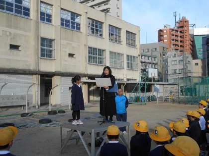 1枚目の写真は、西成消防署主催の防災・防火に関する絵画作品の努力賞の表彰伝達の様子です。