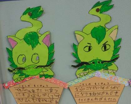 1年生たちが心を込めて考えた今年の目標の一部です。