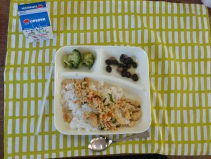 1月17日(水)、今日の献立は、親子丼、ブロッコリーのごま和え、黒豆の煮物、牛乳です。『黒豆』には、「まめに(真面目に)働き、まめに(健康に)暮らせますように」という願いが込められています。また、黒い色には、魔除けの力があるとされ、黒豆は一年の幸せを願って食べるおせち料理の一つです。