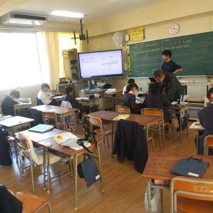 1月17日(水)、5年生は、分割授業で三角形や台形の面積を求める問題に取り組んでいました。