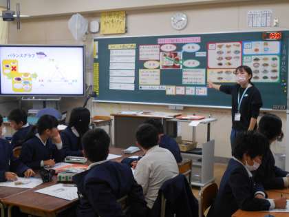 5時間目は栄養の学習でした。「バイキング給食にチャレンジしよう」というめあてで取り組み、子どもたちはバランスのよい食事について学習することができました。グループで話し合ったり、前で発表したりととても楽しそうに学び、活動することができました。