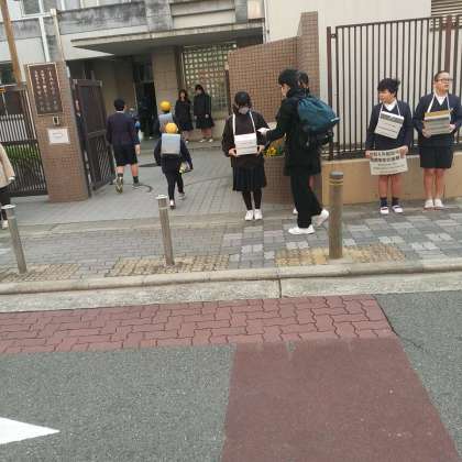 1月23日(火)、本日より26日まで通用門にて、児童会と生徒会による、能登半島地震にかかる災害義援金の活動が行われました。