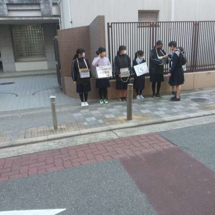 1月24日(水)寒い朝、通用門にて、児童会・生徒会による募金活動の様子です。