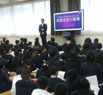 児童のあいさつに始まり、校長先生からのお話、