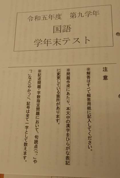 9年 学年末テスト
