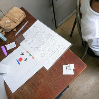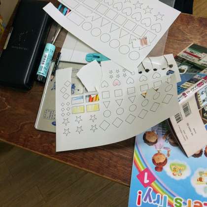 「HAPPY NEW YEAR」や「HAPPY BIRTHDAY」というタイトルで、○、△、□、☆などの形に色付けしたものを組み合わせて飾り付けをしていました。