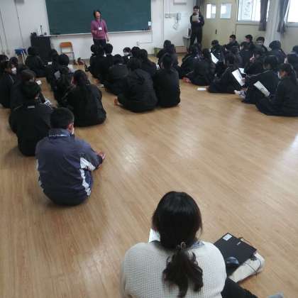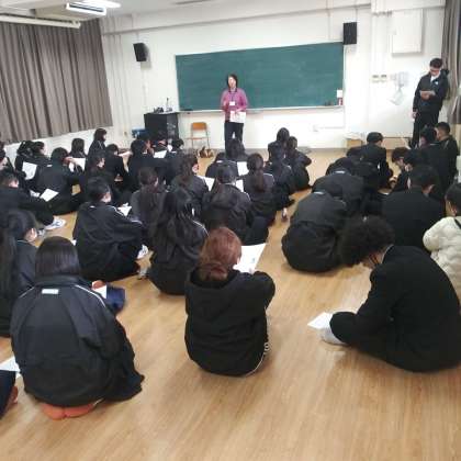 2月9日(金)、多目的室にて、明日の私学入試や公立入試に向けての注意事項のお話しがありました。