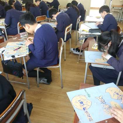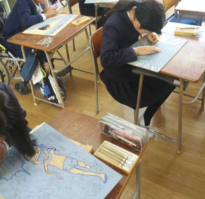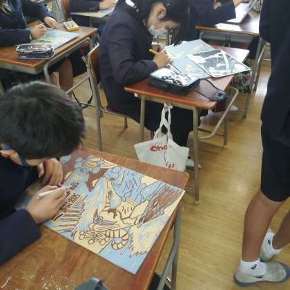 2月15日(木)、6年2組で版画製作がありました。とてもリアルに丁寧に作業をしていました。