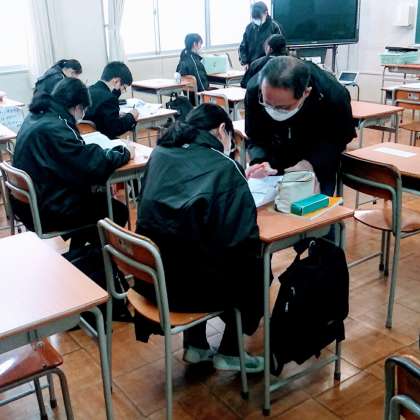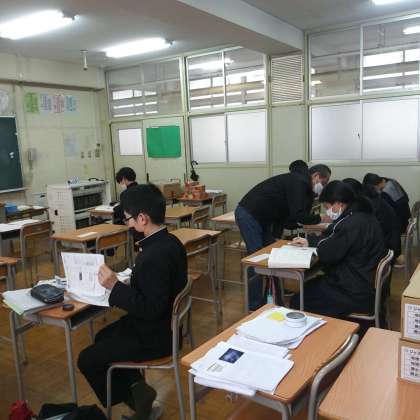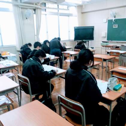 2月21日(水)、7・8年生対象の学年末前学習会が行われました。参加生徒は、7年生が頑張って自学自習していました。
