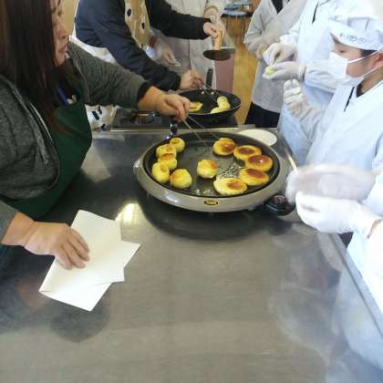 ・手芸・料理クラブと国際クラブ:調理室での「ホットック」作り。