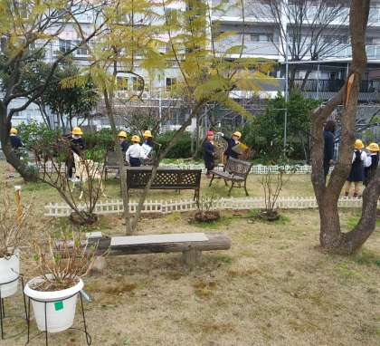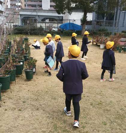 2月27日(火)、1年生たちは、友だちと協力し、話し合って、花園公園内の植物や生き物の観察をしていました。4回目の花園公園だったので、どこにどのようなものがあるのか、よくわかっている様子でした。