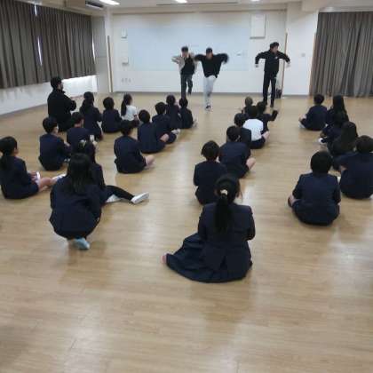 1時間目の3年生たちは、指導のお兄さんのダンスを見たり、一緒に踊ったりして英語に親しみました。