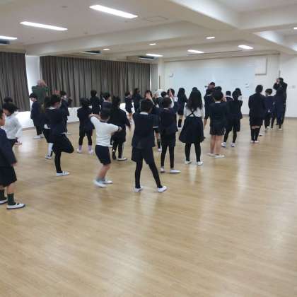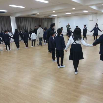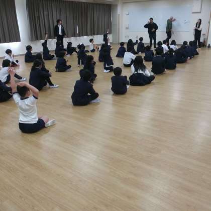 4年生たちは、ダンスのお兄さんに合わせて、ダンスを踊り、その後、ゲームを楽しんでいました。