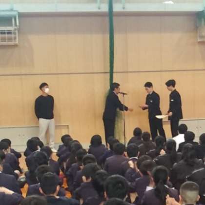 今日は、中学校のサッカー部、美術科、小学校の読書冊数表彰の賞状伝達がありました。