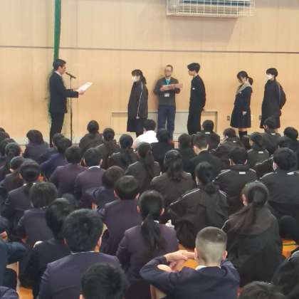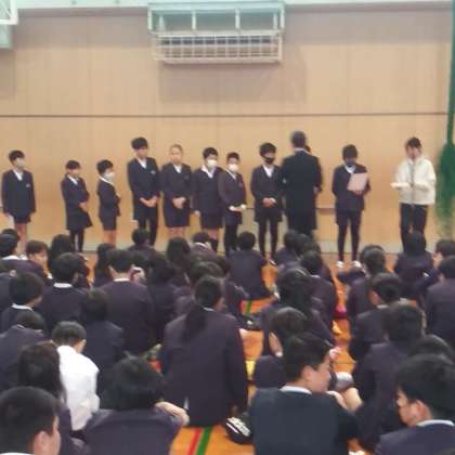 3月4日(月)、今年度最後の全校朝会・集会(いまみや朝会)が体育館にて行われました。
