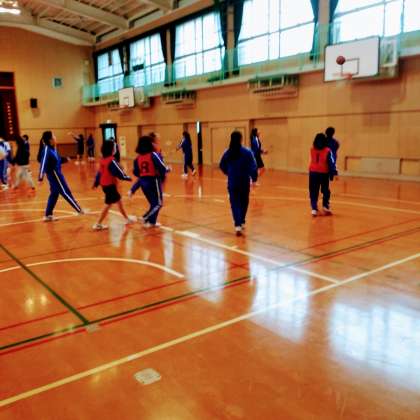 どんなスポーツを取り組みたいかを話し合い、「バドミントン」と「バスケットボール」に分かれてゲームを楽しみました。