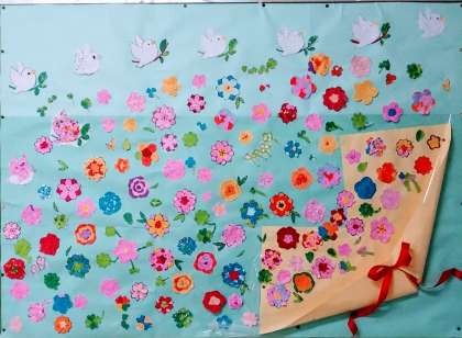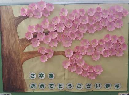 3・4年生の掲示板とすまいる学級の掲示板にも「卒業おめでとう」が飾られています。