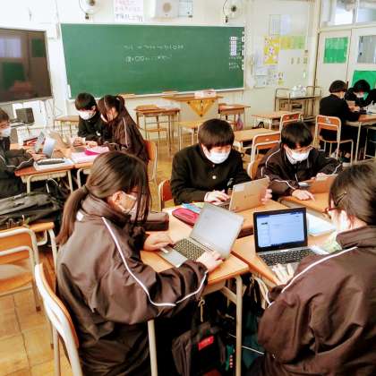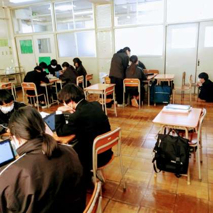 3月11日(月)、7年生の社会の授業では、グループで「偉人について」の調べ学習に取り組んでいました。