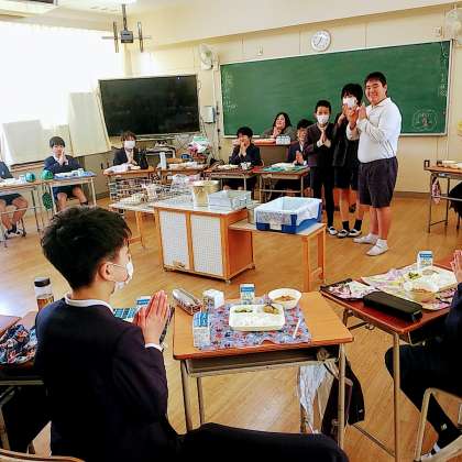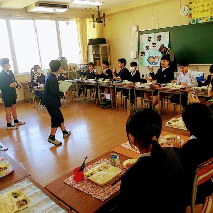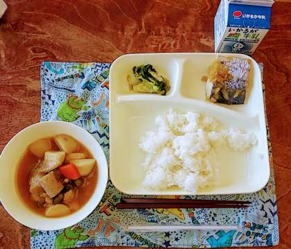3月15日(金)、今日の献立は、ごはん、サゴシのおろしじょうゆかけ、里芋と野菜の含め煮、菜の花のおひたし、牛乳です。