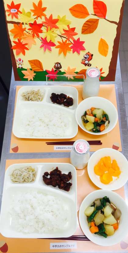 クジラのオーロラ煮は、1時間以上も下味に漬け込み、臭みを消しています。子どもたちに大好評なオーロラソースを絡めて味付けしました。最近ではクジラの肉を食べる機会が少なくなりましたが、たくさんの栄養が含まれていますので、給食でしっかりと食べてもらえるとよいかと思います。