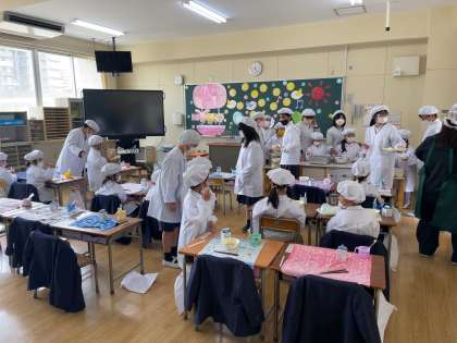 先生が説明をしてから、6年生と一緒に準備を行いました。
