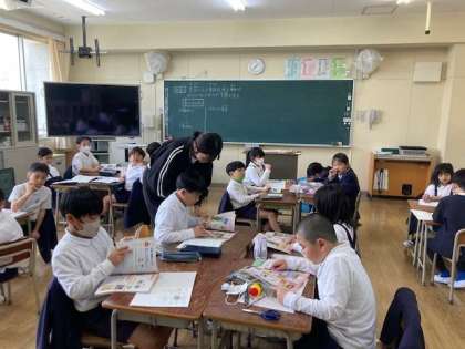 高学年を中心に、中学校教員が小学校の授業を担当するのが本校の大きな特長の1つです。