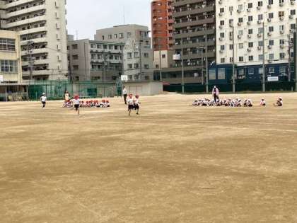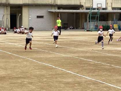 1・2年生が体力テストの50m走に挑戦です。先生の合図で、ゴールに向かってスパートです。1年生は初めてなので、最初は2年生の走りを見学です。2年生は去年のタイムを縮めることが出来たでしょうか?
