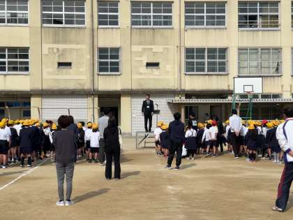 今日の朝会は教頭先生からのお話でした。人は自分が話したような人間になっていくので、人がいやな思いをしたり、傷つくような言葉は絶対に言わないで、自分の夢や希望を話すように正しい言葉を使って話すことが大切だと話されました。また、当番の先生から今月の生活目標「元気よくあいさつをしよう」のお話もありました。どのお話も子どもたちはしっかりと聞くことができました。