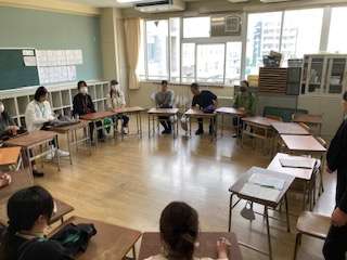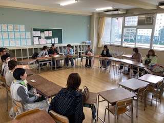 小学校では、授業参観後、学年懇談会が行われました。2クラス合併で行われ、担任から普段の様子などの報告と意見交流が行われました。