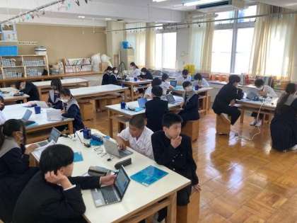 8年生美術では今後使用する個人PCの設定を行いました。本校美術はICTを駆使して行うことが多いです。
