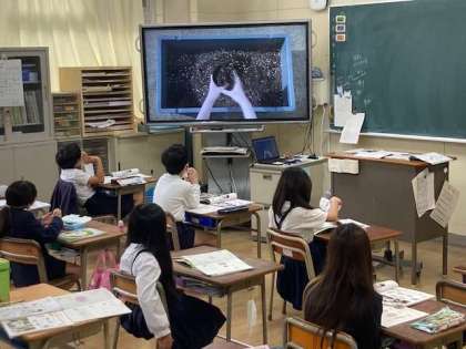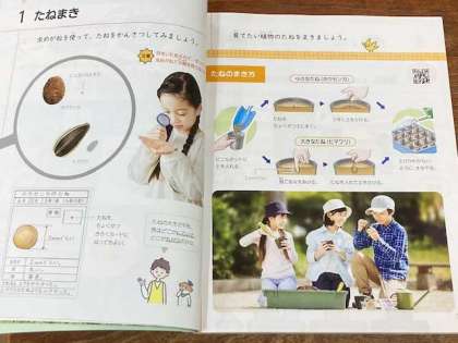 これから、ひまわり・ほうせんか・マリーゴールドの種まきをするので、映像を見ながらそのやり方を学習しました。