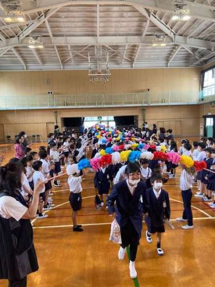 その後は各学年からお祝いの言葉や、全児童参加の「じゃんけん列車」で大いに盛り上がりました。