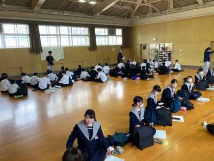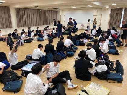 5月7日、7年生は格技室で一泊移住の、9年生は交流ホールで修学旅行の準備をしました。荷物点検やルールの確認をしました。