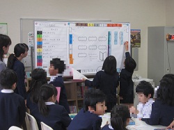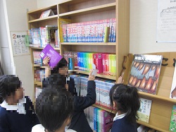 子どもたちは先生から出された3つの本がどこの棚にあるのか予想して、実際に見つけ出すという活動をしました。「やった。ここにあった。」「おかしいな。ここにあると思ったんだけど、ないな。」という声が聞こえてきました。普段、気づかなかった本の分類について、理解を深めることができました。また、どこに何の本があるのか、何でも知っている図書室の先生のすごさにも気づくことができました。