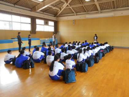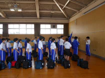 一泊移住の出発式を行いました。生徒代表のあいさつがあり、生徒達はしっかりと聞くことができました。たくさんの見送りの中、元気に出発しました。