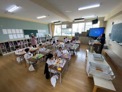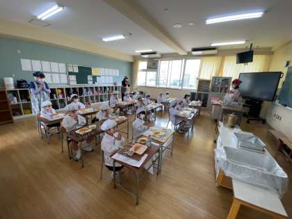 本日のメニューのミネストローネは、イタリア語で「具だくさん」という意味を持つスープです。玉ねぎやにんじん、トマトのほかに、米やパスタなどをいっしょに煮込むこともあります。今日の給食では、鶏肉以外に、キャベツやたまねぎ、にんじん、パセリ、トマト、ニンニクと6種類の野菜が使われていました。
