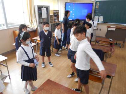 令和6年度のたてわり班の活動が始まりました。たてわり班は1〜6年生が一緒になった班です。今年度も、児童集会やいまスポ、6年生を送る会、新今宮祭ではたてわり班で活動します。今日は「なかよくしよう!」というめあてで自己紹介をしたりゲームをしたりして、とても楽しそうに活動していました。