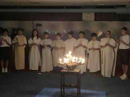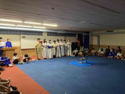 今日最後のプログラム、キャンドルサービスが行われました。80期生全員でローソクに火を灯し、心を一つにしました。