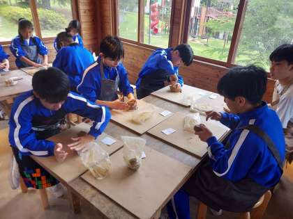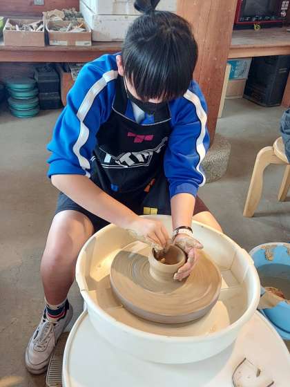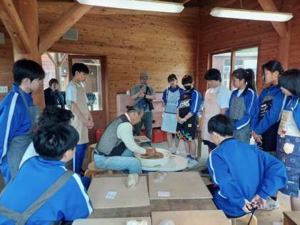 陶芸班は、プロの陶芸家の方の説明を聞いてから、電動ろくろを使ってお碗を作りました。もう1つは手びねりで自由に作品を作りました。それぞれ個性的な作品ができました!後日、学校に作品を届けていただきます。