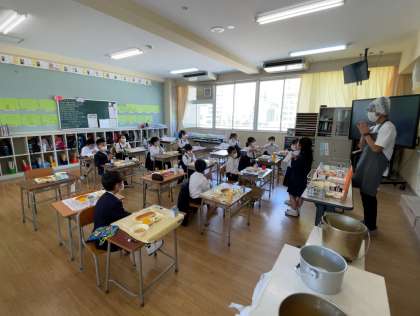 本日の「鶏肉とコーンのシチュー」は、新食品の「シチュールウの素」を使っています。小麦粉や牛乳・乳製品が入っていないため、小麦アレルギー、乳アレルギーのある人も食べることができます。