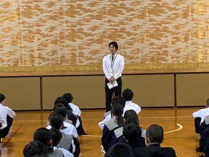 中学校の集会が体育館であり、中学校教頭先生からお話がありました。