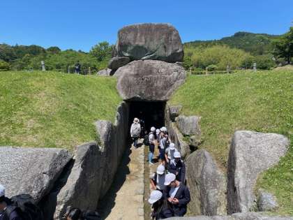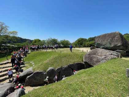 5・6年生 遠足 石舞台古墳の下