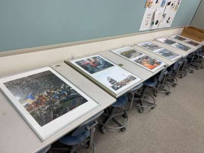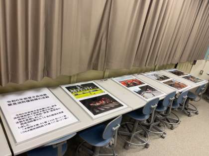 小学校パソコン室には、令和6年能登半島地震において、西成消防署が緊急消防援助隊として活動の様子をまとめたパネル展示がありました。